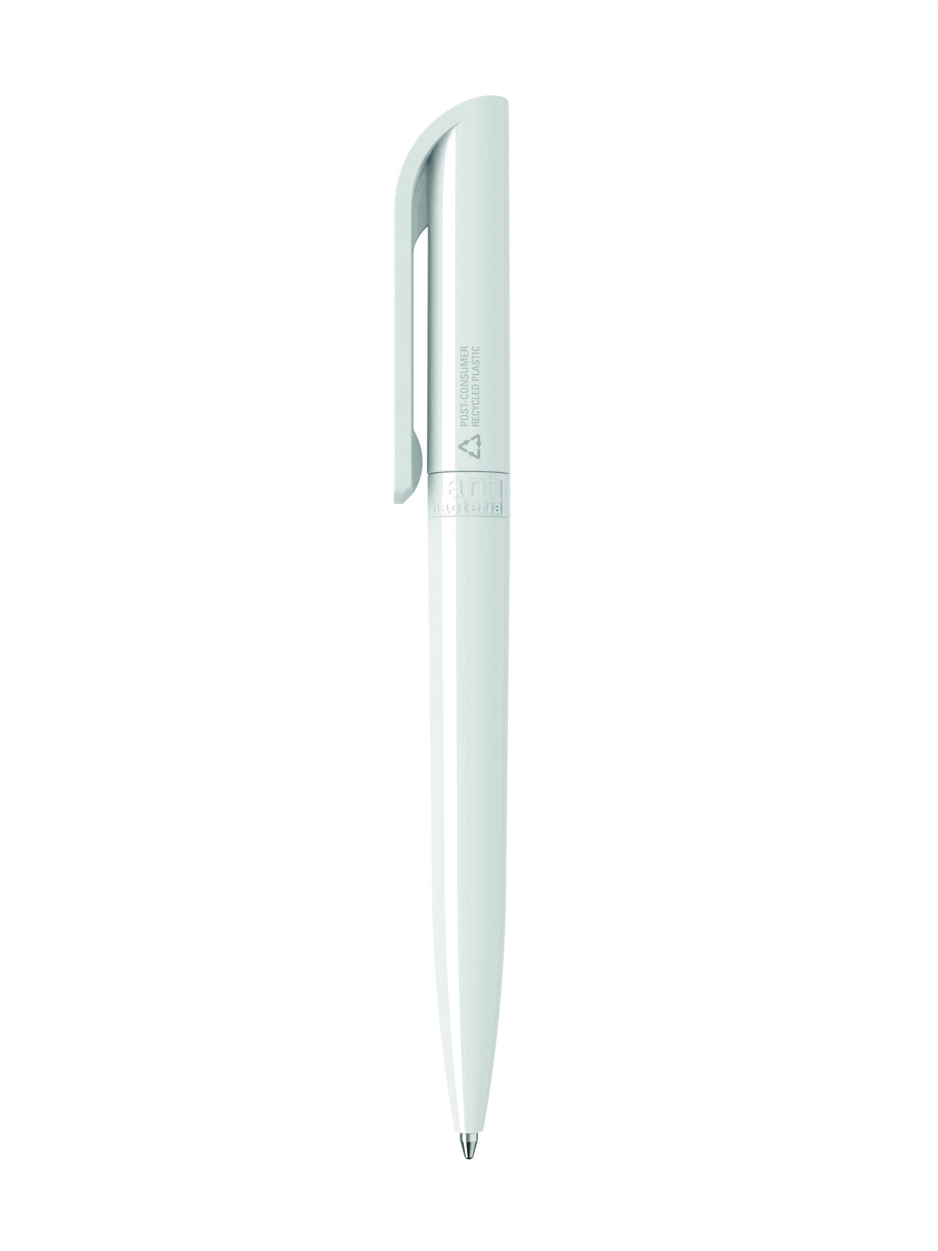 Plástico Reciclado ABS no toxico. Bolígrafo antibacteriano capaz de combinar diseño y seguridad. Gracias a un aditivo antimicrobiano especial con certificación ISO 22196:2011, el plástico libera iones de plata que destruyen hasta el 99,99% de las bacterias presentes en el bolígrafo. Certificados RoHS y REACH |